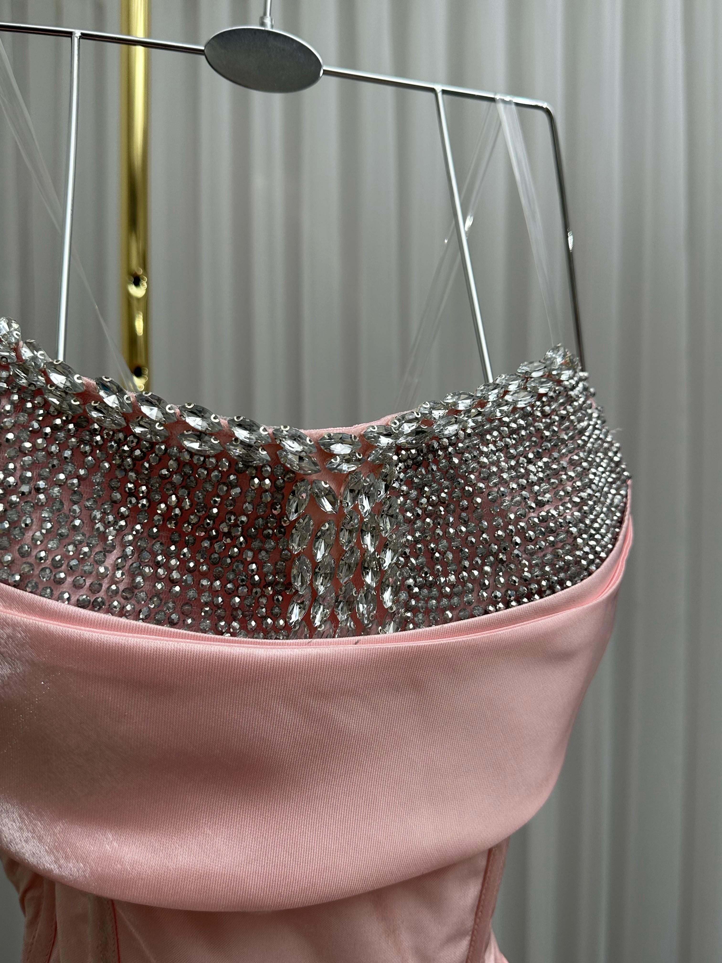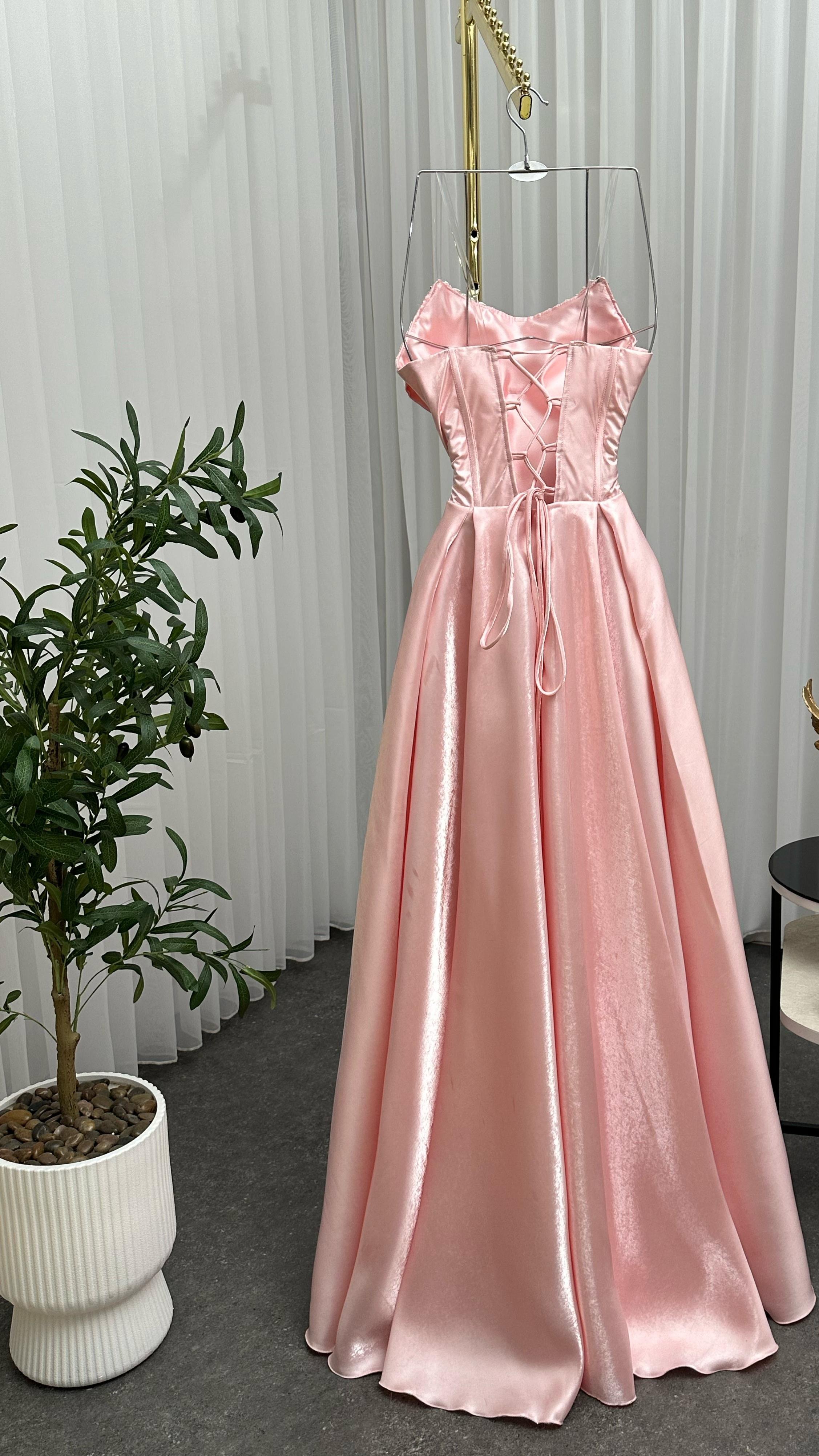 هذا الفستان الأنيق يتميز بتصميمه الفخم والراقي بلون زهري