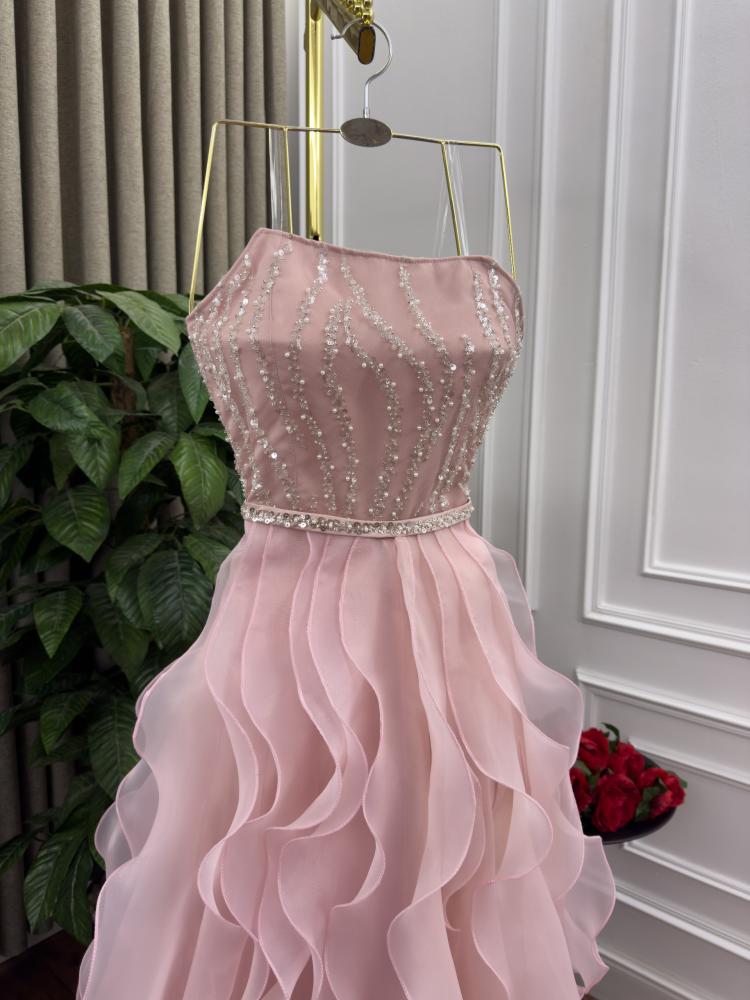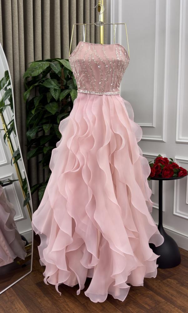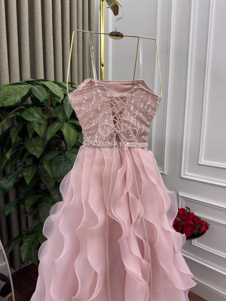 هذا الفستان الأنيق يتميز بتصميمه الفخم والراقي بلون .. وردي